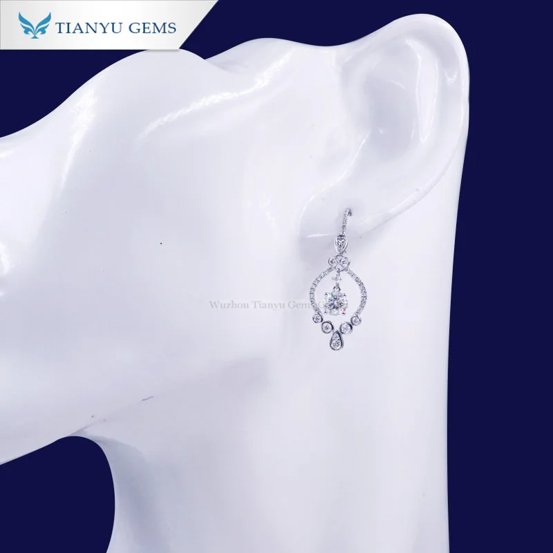 Tianyu gems fashion moissanite diamond elegant solid gold women drop earring