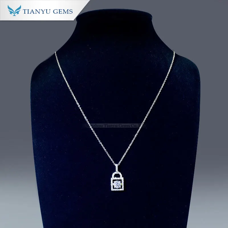 Tianyu gems lock shape moissanite diamond halo women pendant necklace