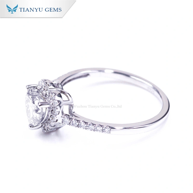 Center Stone: Center stone features 6.5*6.5mm GHcolor VS Clarity White Moissanite Diamond in pave setting.