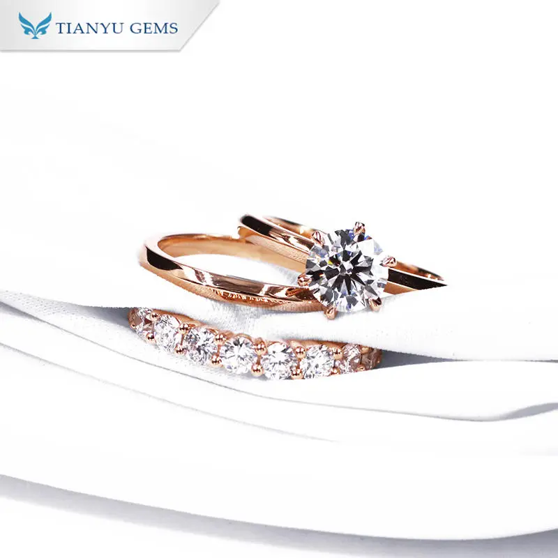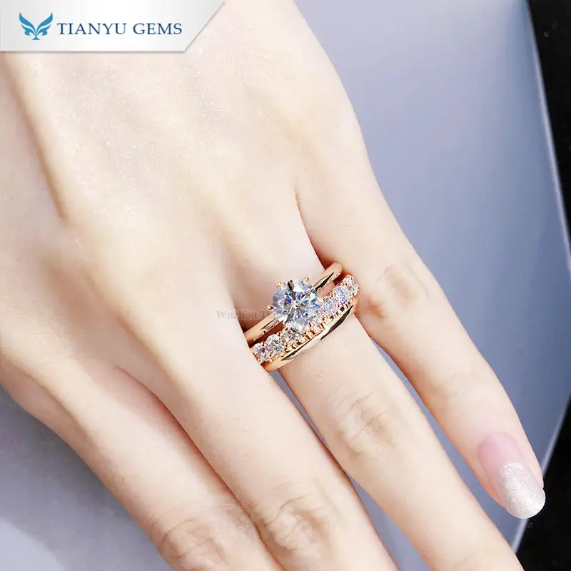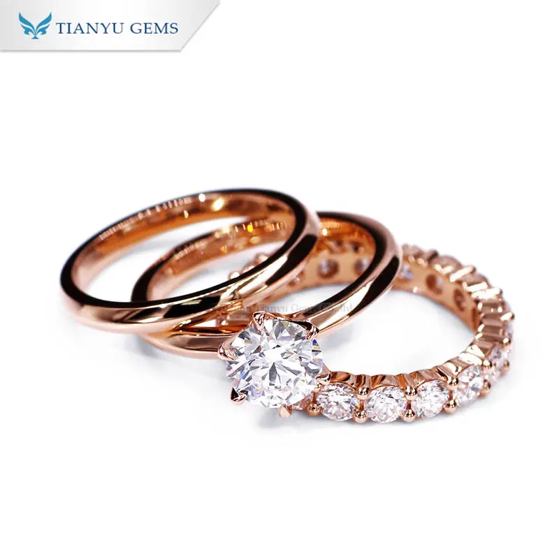 Tianyu gems 2.9ct F color vs round hearts and arrows white lab grown diamond 14K/18K rose gold ring set