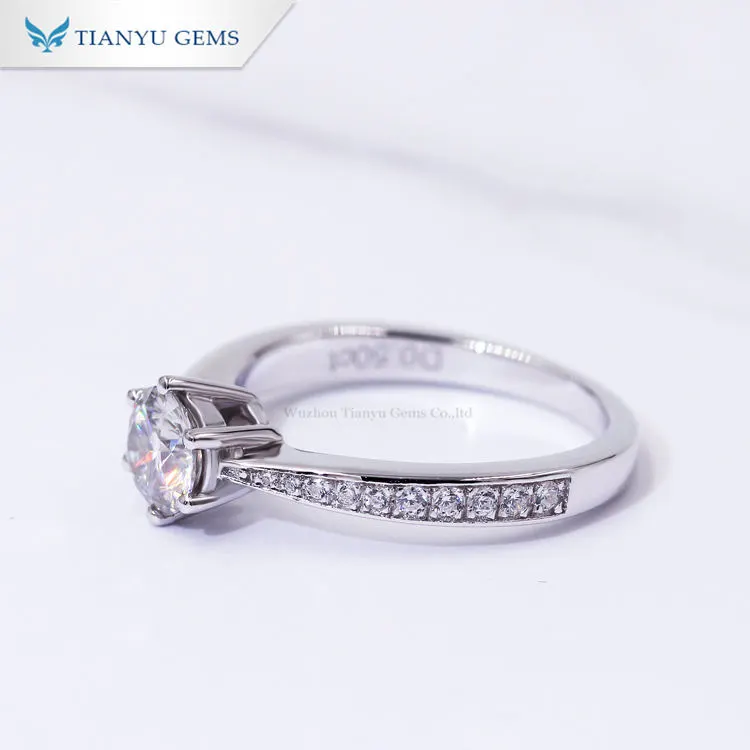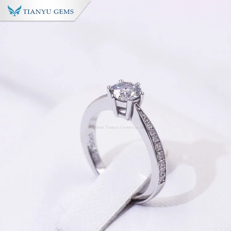 Tianyu gems 6 prong 0.5ct 1.0ct round moissanite silver ring