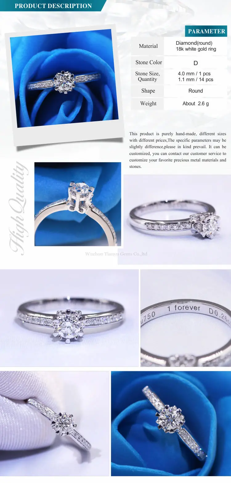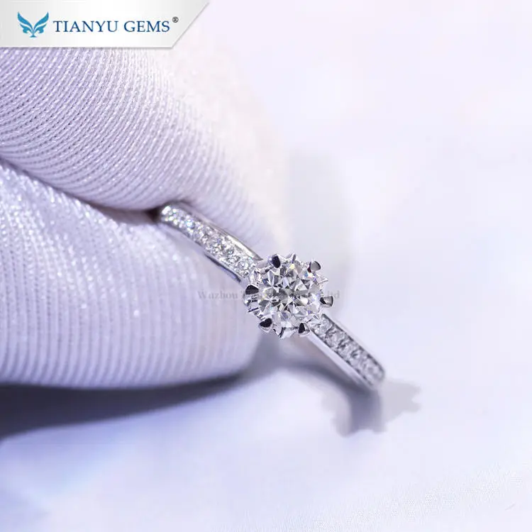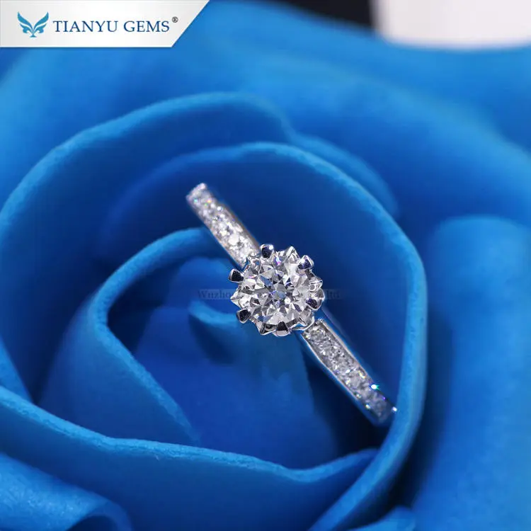 Tianyu Gems elegant design 18k pure gold 4mm DEF VS round cut HPHT lab grown diamond solitaire jewellery women ring