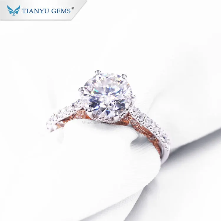 Tianyu gems 14k rose and white gold 1.5ct moissanite ring for women