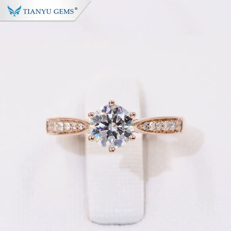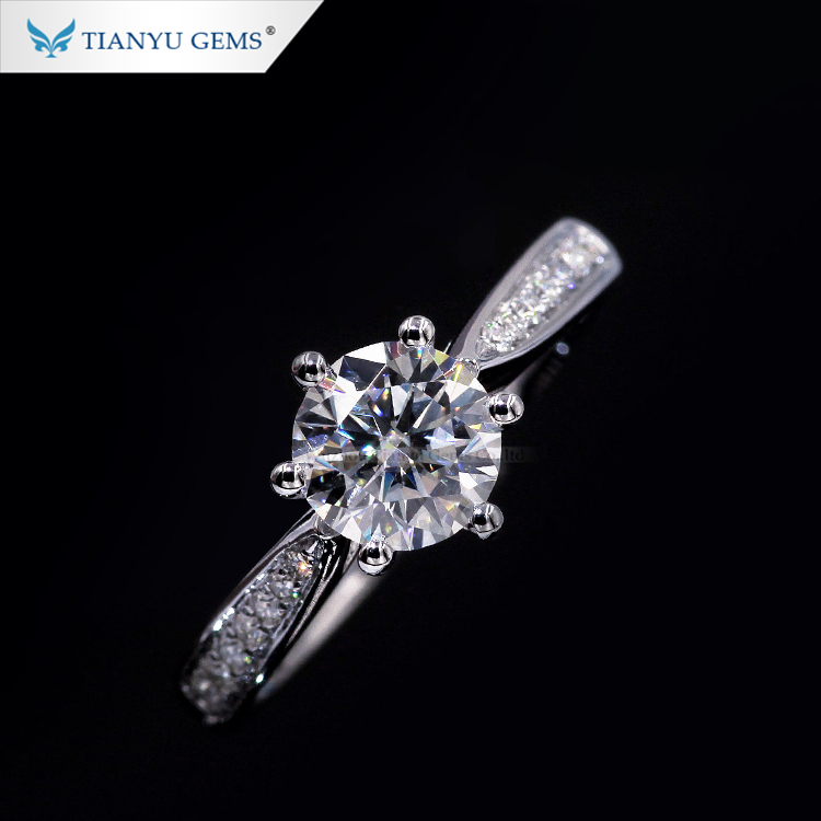 Tianyu Gems Customized 5.5mm 0.65ct def vvs Moissantie Diamond 14k Solid White Gold Ring