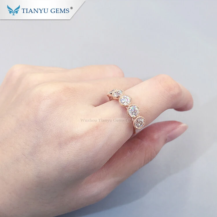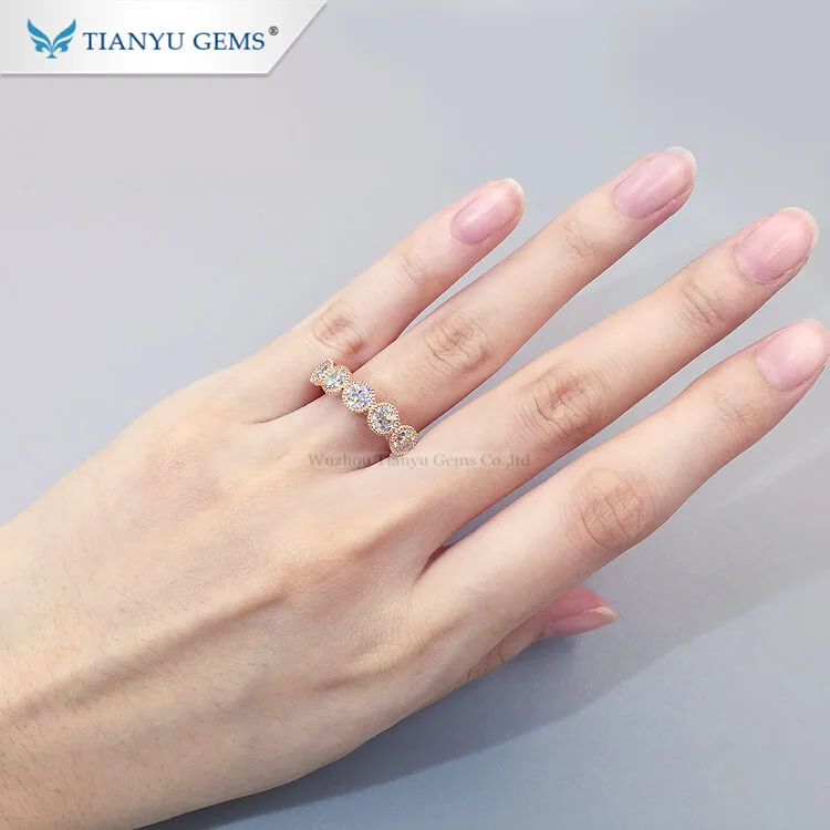 Tianyu Gem Customized 4mm OEC Cut GH Moissanite Diamond 14k Rose Gold Ring Jewelry
