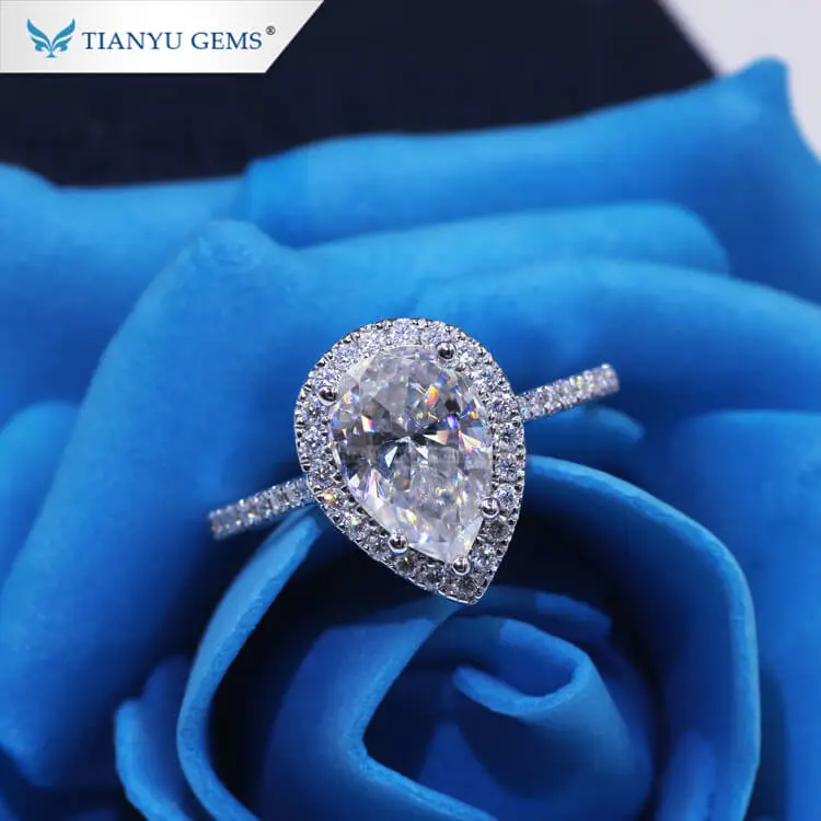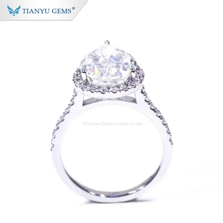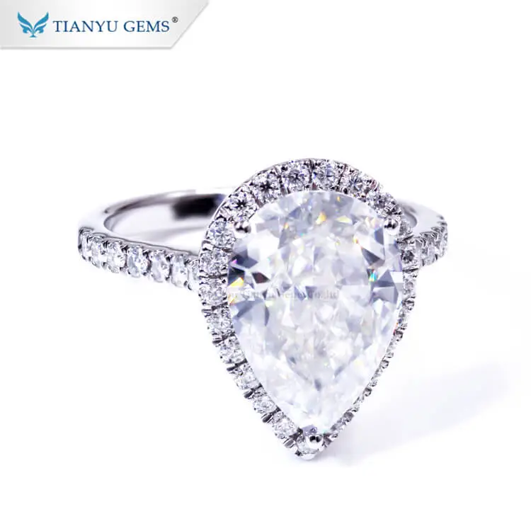 Tianyu Gems 7X10MM Crushed Ice Pear Cut DEF VVS Moissanite Diamond 14K White Gold Ring