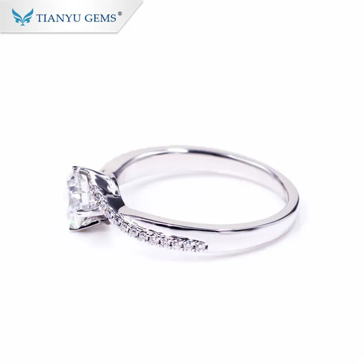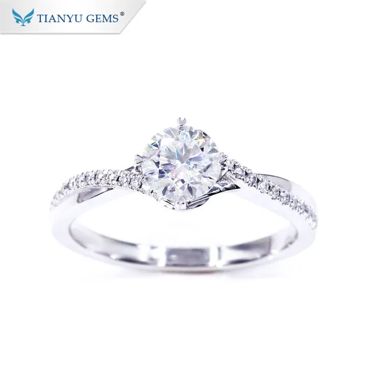 Tianyu gems 1ct moissanite diamonds engagement white gold ring 14k pure gold
