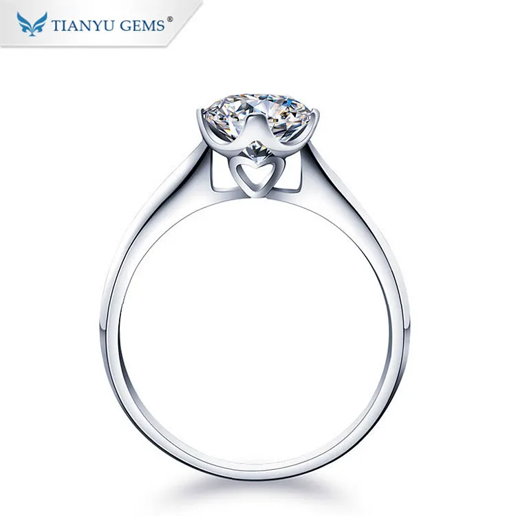 18K white solid gold solitaire 4 bazel set white moissanite diamond ring wedding