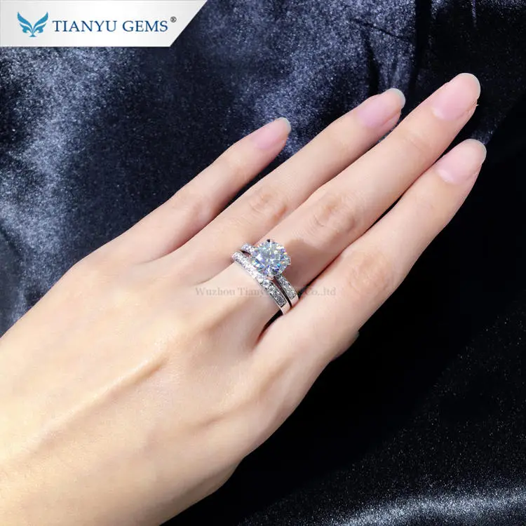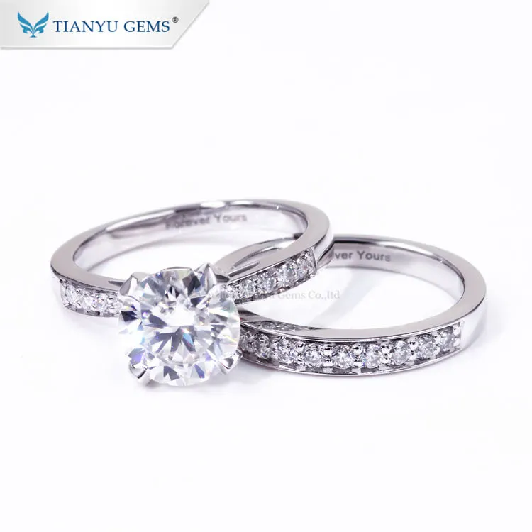Tianyu Gems customized 18k white gold 2.5ct round heart&arrow colorless moissanite ring set for ladies
