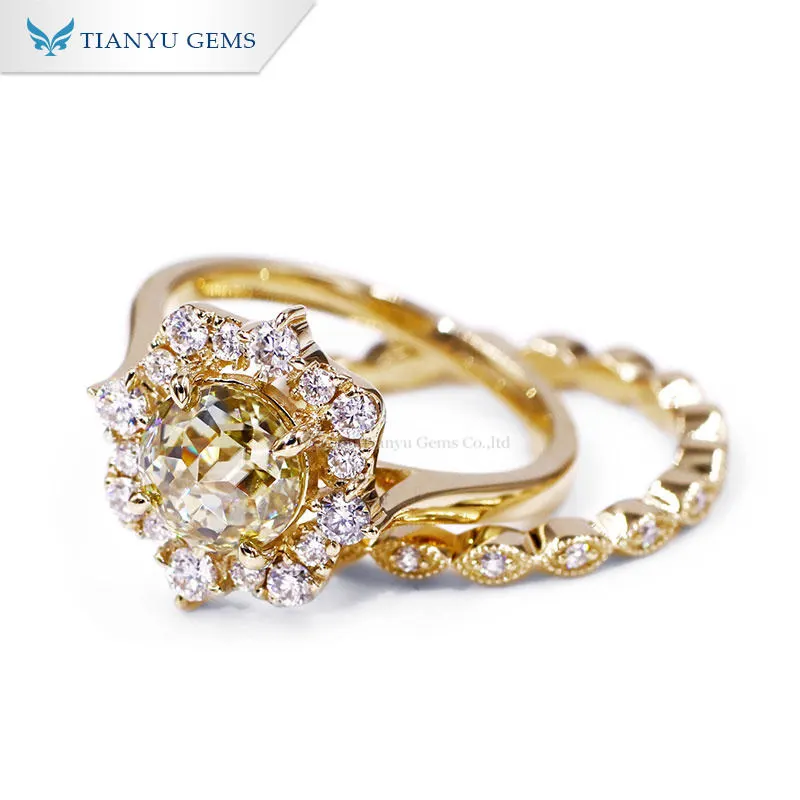 Tianyu gems round Jubilee cut yellow moissanite 18k yellow gold ring set