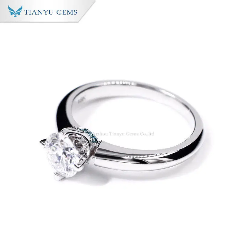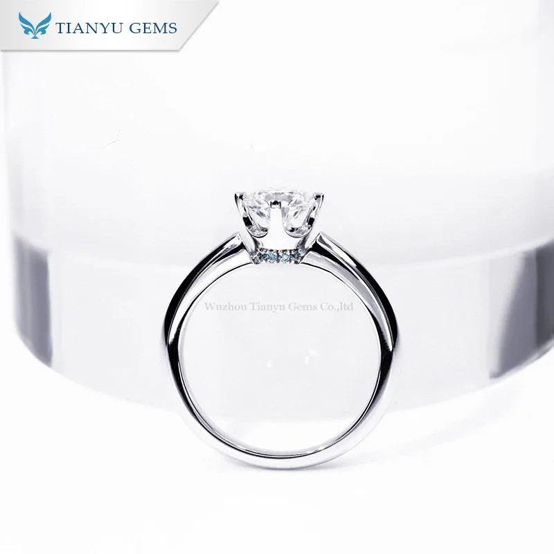 Tianyu Gems 6mm def vvs Colorless Moissanite Diamond 14K Solid White Gold Ring Jewelry