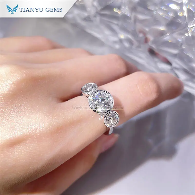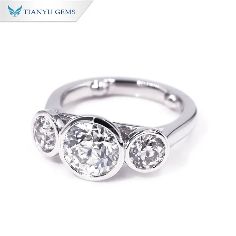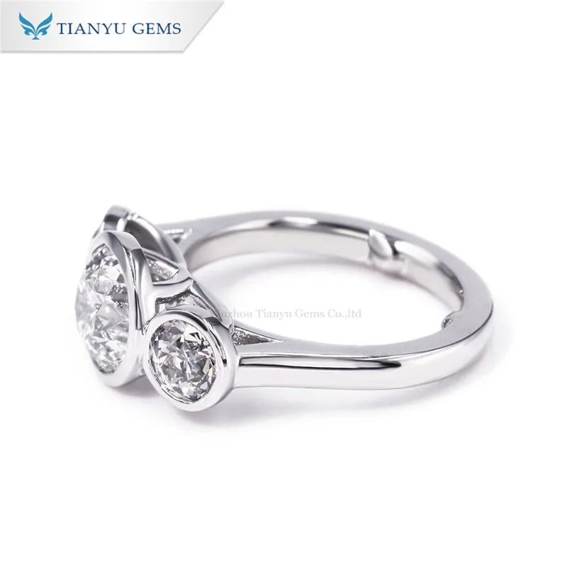 Tianyu gems 7.5mm round cut moissanite bezel setting platinum Pt950 wedding ring for female