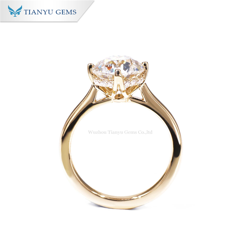 Tianyu gems 8.5mm round OEC DEF colorless moissanite diamond solid yellow gold wedding ring for female