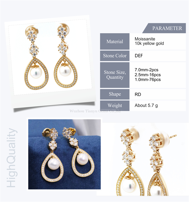 In the world of fine jewelry, custom-made pieces hold a special allure, embodying the unique tastes and preferences of their wearers. The Custom-Made 10K Yellow Gold Pearl and Moissanite Diamond Earrings exemplify this notion, blending classic elegance with contemporary flair. Crafted with precision and care, these earrings feature a stunning combination of lustrous pearls and sparkling moissanite diamonds, creating a captivating accessory that is as timeless as it is exquisite.