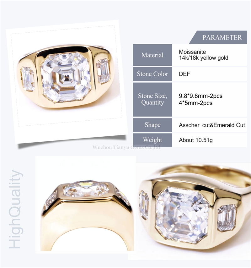 Tianyu gems Three Stones Moissanite Rings Square Rings for Men