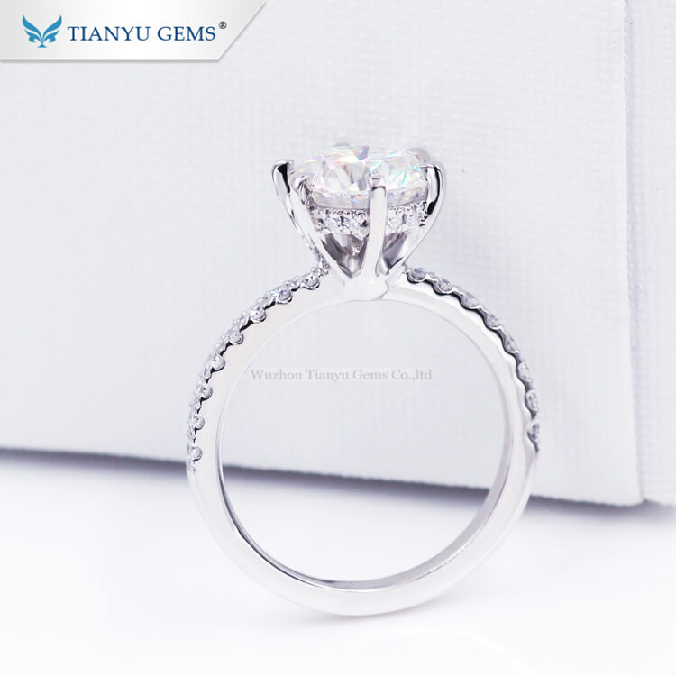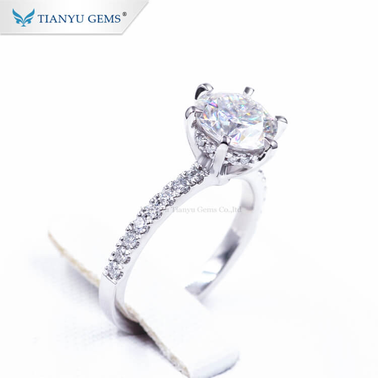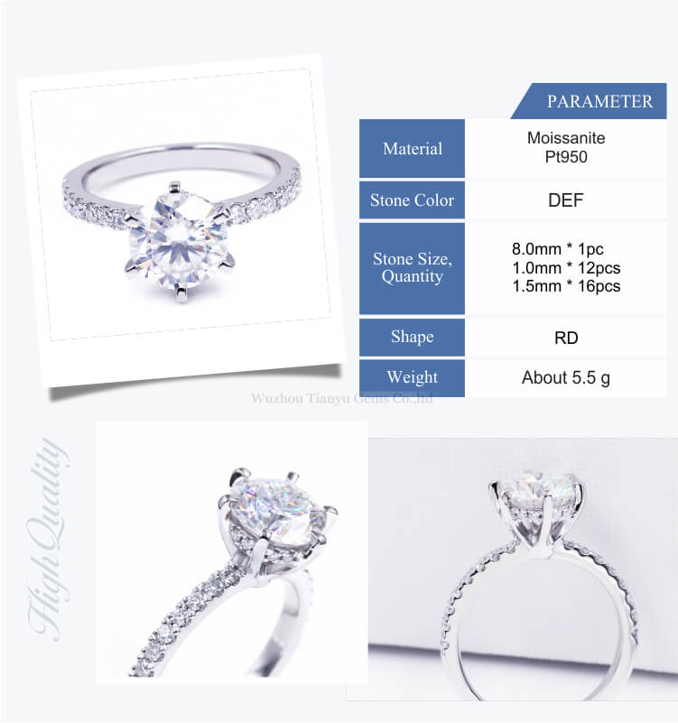 Tianyu gems Customized PT950 heart and arrow colorless moissanites engagement rings for woman