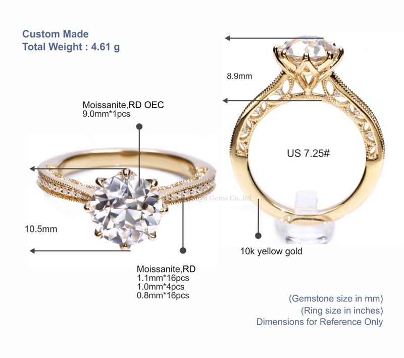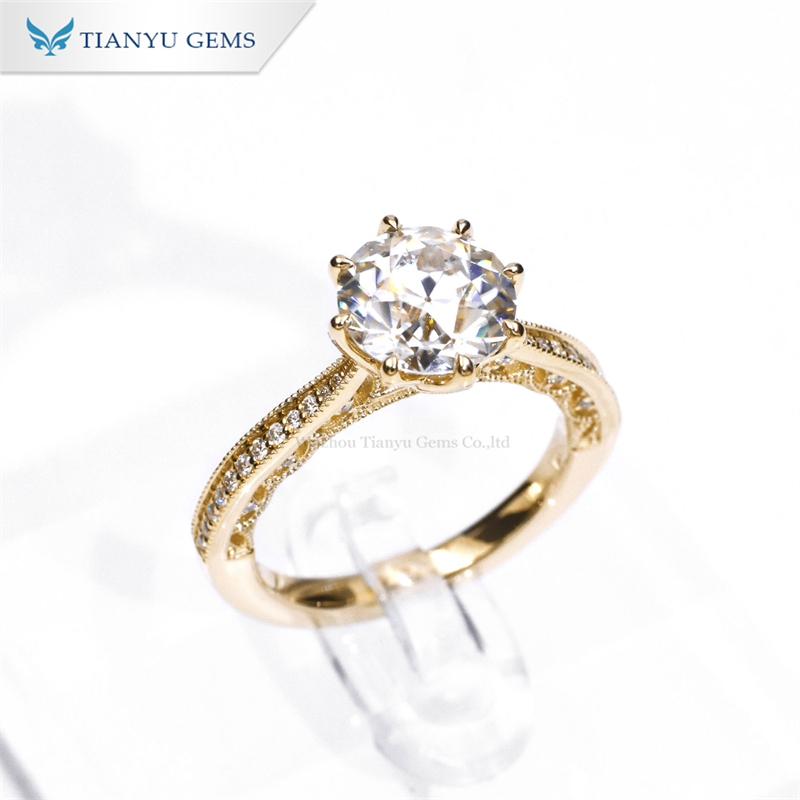 Tianyu Wedding Round Shape Moissanite 10K Yellow Gold Gold Milgrain Engagement Rings for Gifts Presents