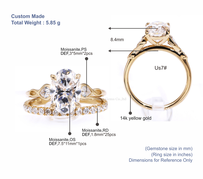 We are a professional jewelry manufacturer, with over 20 years of experience in jewelry making, our main products are moissanite/lab diamond solid gold and silver jewelry, engagement rings, wedding bands, pendants, bracelets, and other related products. Our company has a complete design team, which helps to make high-quality jewelry to customers' ideas. We provide OEM service as well, we can do any customers' designs and logos on the jewelry. Our method of production is very safe for human health. Besides, we have professional staff who will send pictures and videos of the jewelry before it is sent out.