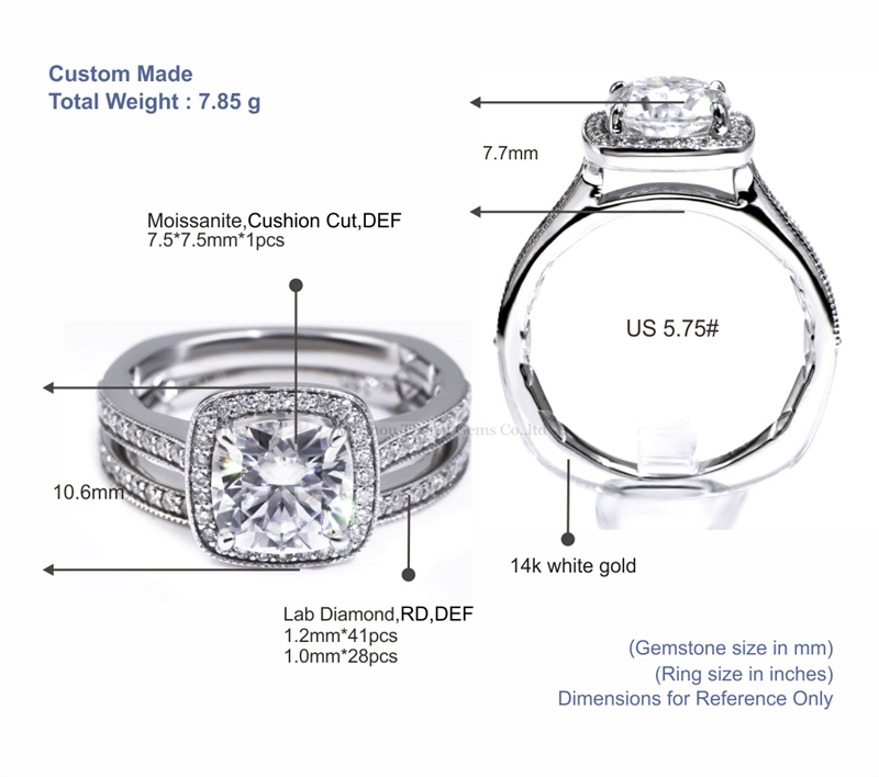 We are a professional jewelry manufacturer, with over 20 years of experience in jewelry making, our main products are moissanite/lab diamond solid gold and silver jewelry, engagement rings, wedding bands, pendants, bracelets, and other related products. Our company has a complete design team, which helps to make high-quality jewelry to customers' ideas. We provide OEM service as well, we can do any customers' designs and logos on the jewelry. Our method of production is very safe for human health. Besides, we have professional staff who will send pictures and videos of the jewelry before it is sent out.