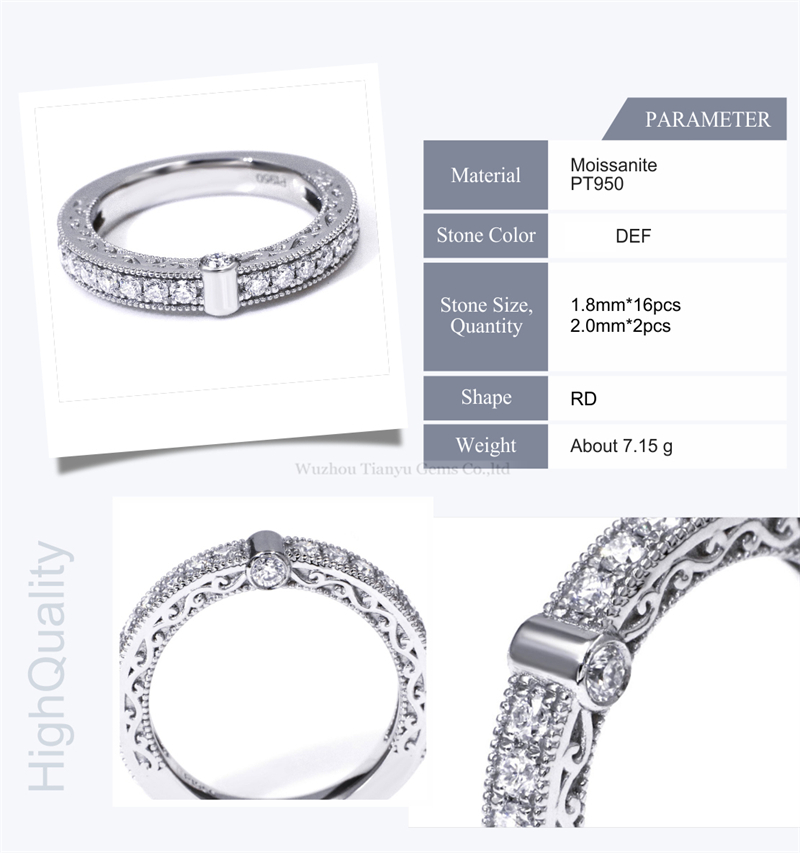 The diamond hollow pattern PT950 women’s ring is a masterpiece that blends intricate design with luxurious materials. This exquisite piece showcases the elegance of diamonds set in PT950 platinum, creating a ring that is both sophisticated and captivating.