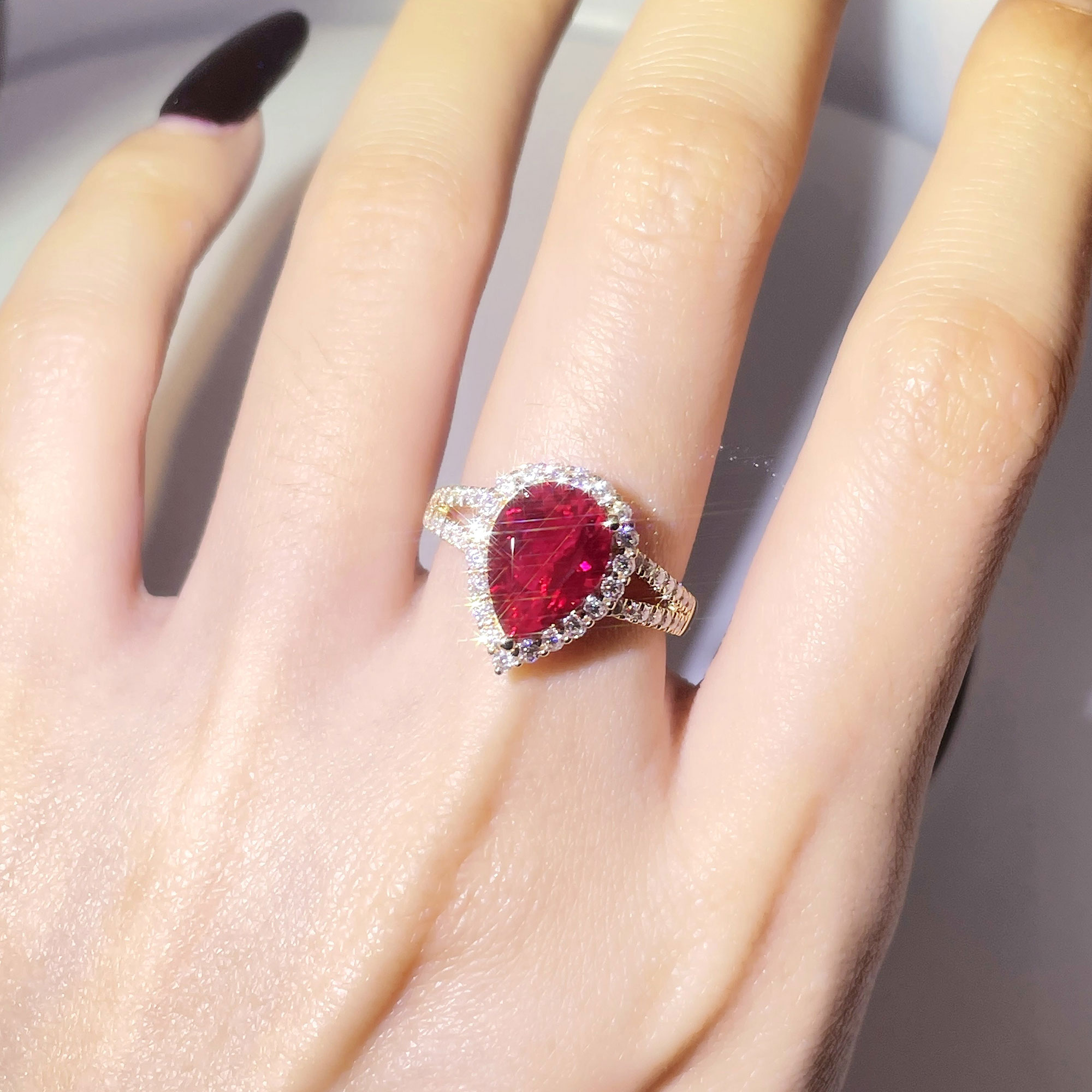 Fashion 4ct Ruby Pear Cut Moissanite Stone Rings Classic Gold Jewelry for Engagement Wedding Party