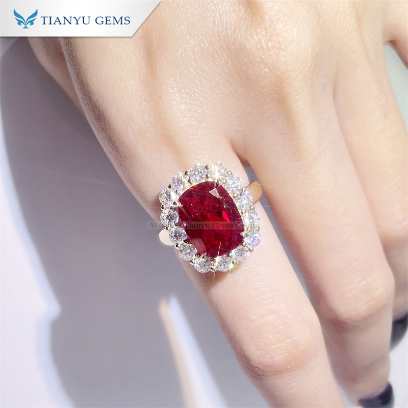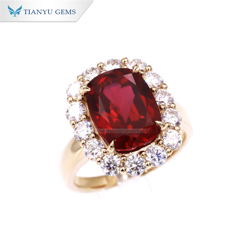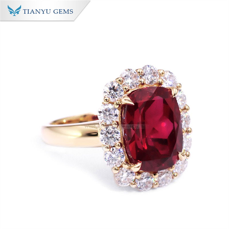 14K Gold Rings Luxury Wedding Rings Ruby Cushion Cut Moissanite Diamond Women Classic Style Gold Plated Gift