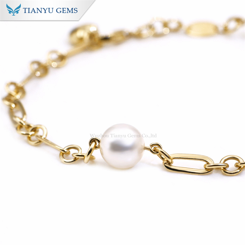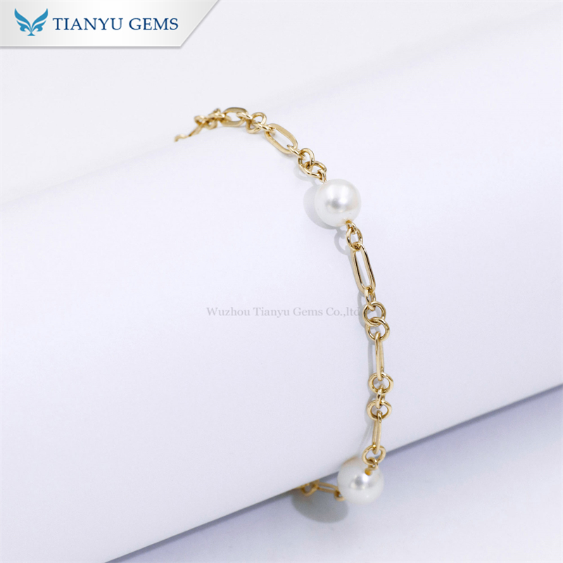 14k Yellow Gold Freshwater Pearl Bracelet Fashionable Jewelry for Women for Party Gift