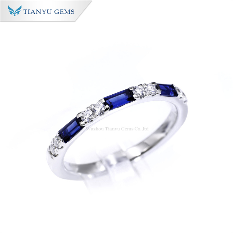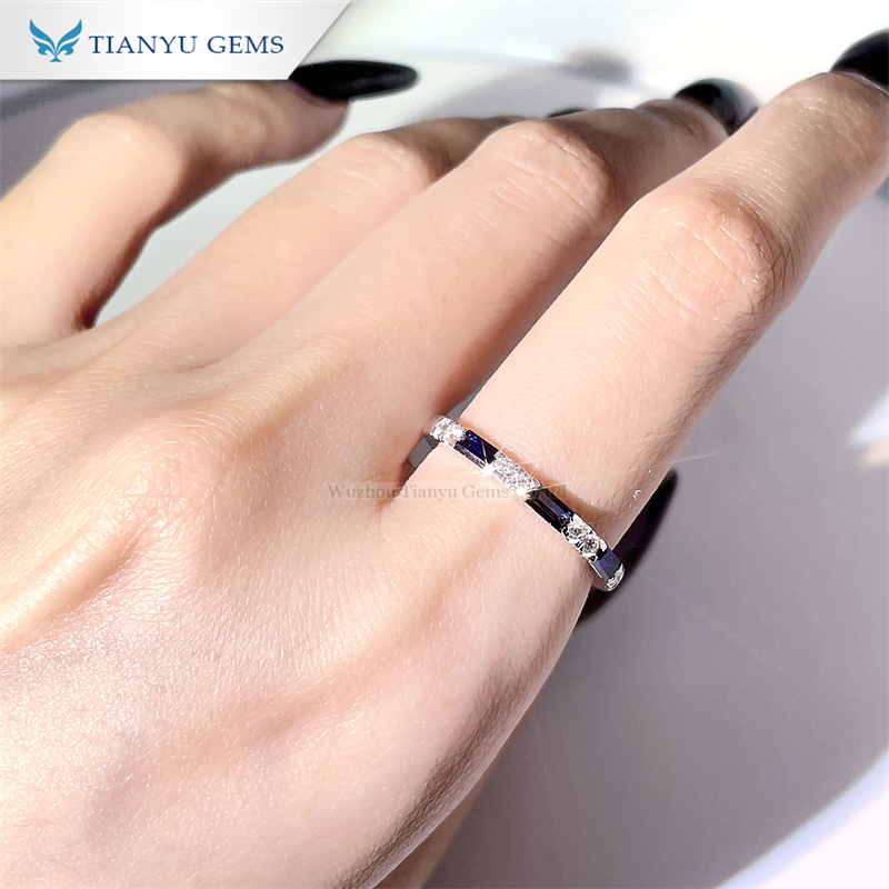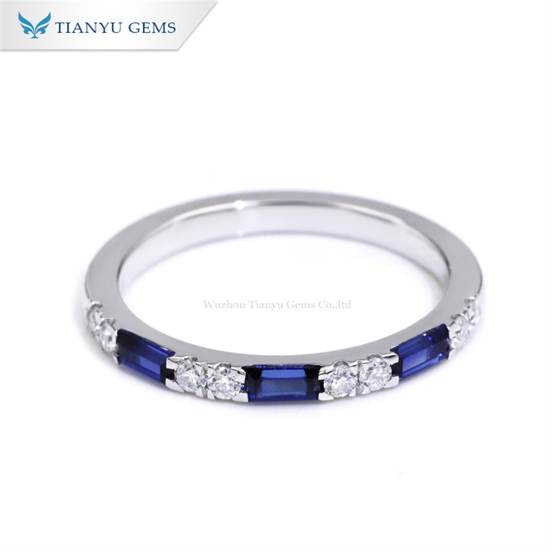 Main Stone  2*4mm*3pcs Sapphire  1.8mm*8pcs Moissanite