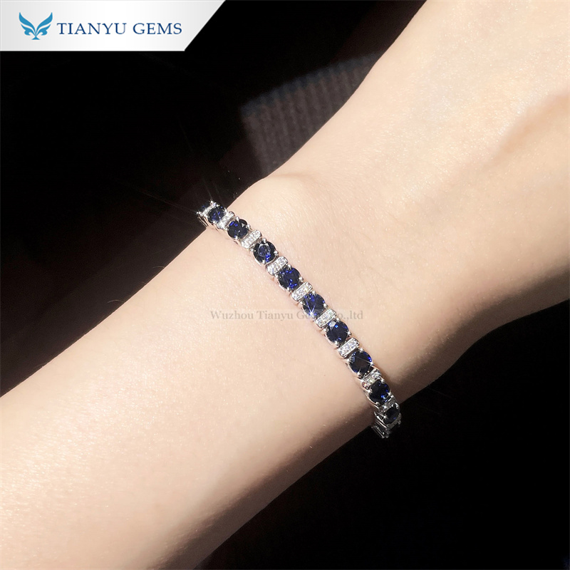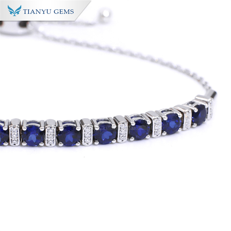 14k White Gold Sapphire Link Chain Elegant Fine Jewelry Bracelet for Women for Tennis & Daily Wear