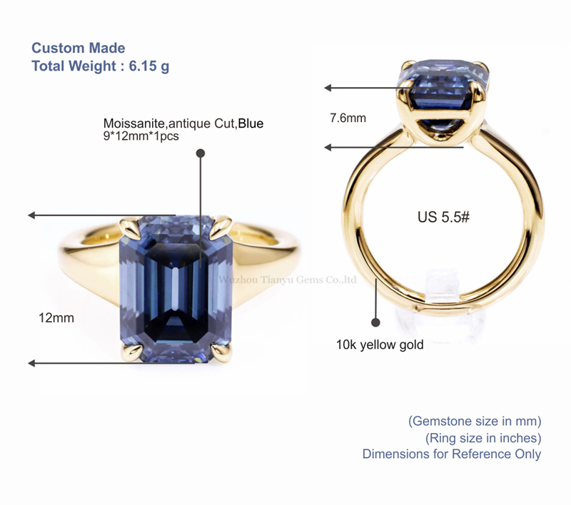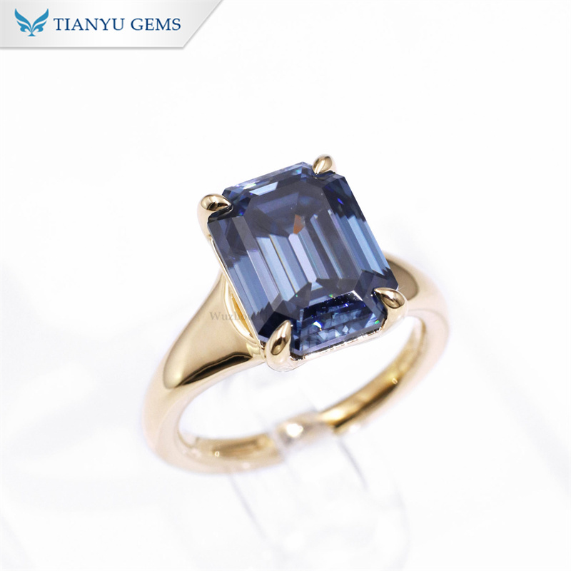 Elevate your style with the Solid Yellow Gold 10k 9*12mm 6 Carat Dark Blue Moissanite Emerald Cut Luxury Fashion Party Ring. This stunning piece is designed to make a bold statement at any event, showcasing the perfect blend of luxury and sophistication. Crafted with exceptional detail, this ring is a must-have for any fashion-forward individual.