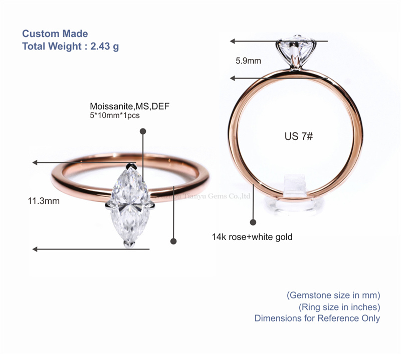 14K Solid Gold Engagement Rings D VVS New Marquise Cut Moissanite Diamond Wedding Bands for Lady Gifts