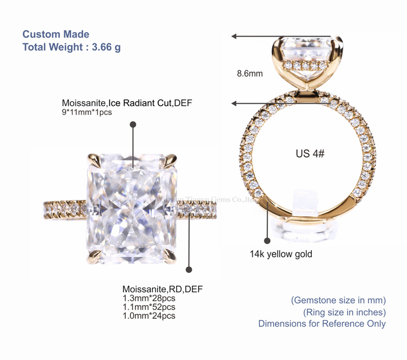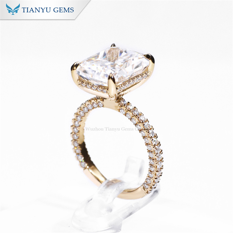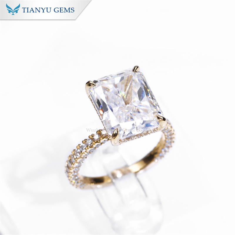 Custom Sparkle Wedding Style Ring Band Fashion Luxury 5Ct Iced Crushed Radiant Moissanite Engagement Ring Women Bride