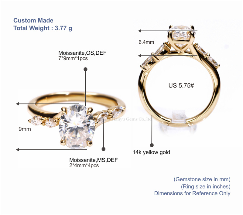 Oval hearts and arrows 7*9mm 2carat D VVS1 Moissanite stone 14k solid yellow gold engagement rings