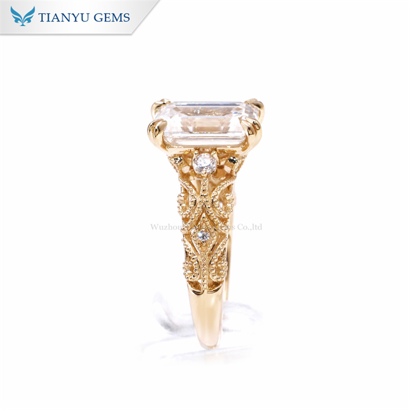 Custom made 7.5*10mm Emerald cut Moissanite D VVS1 14k solid yellow gold classic jewelry rings for women
