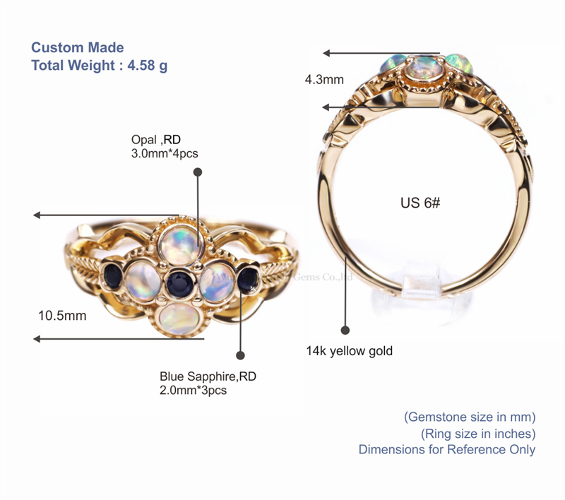 Main Stone  3.0mm-4pcs Opal  2.0mm-3pcs Bule Sapphire