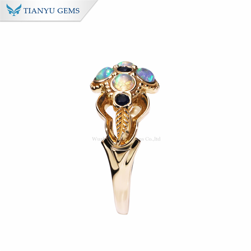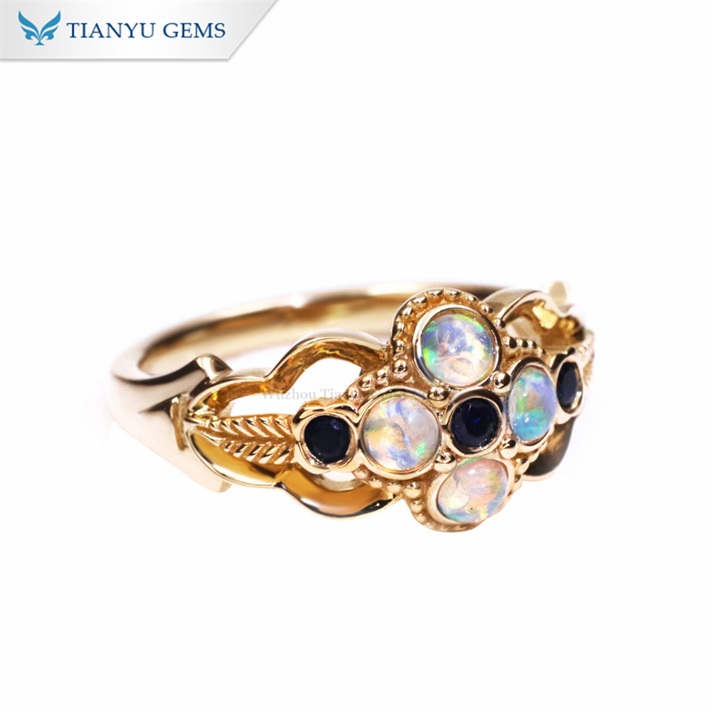 14k yellow gold round 3.0mm opal colorful color jewelry rings private custom