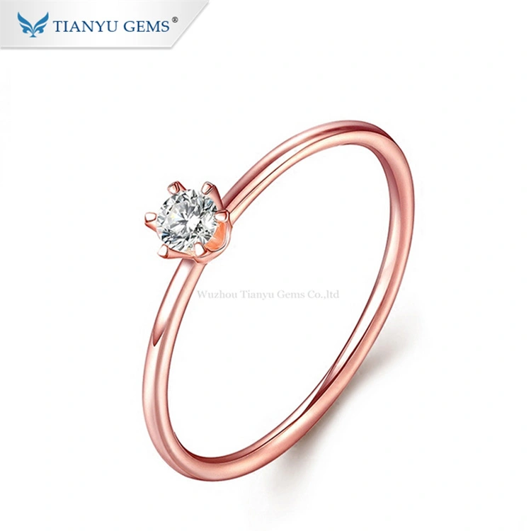 Tianyu Moissanite Round Simple Gold Ring 14K Rose Gold Design For women