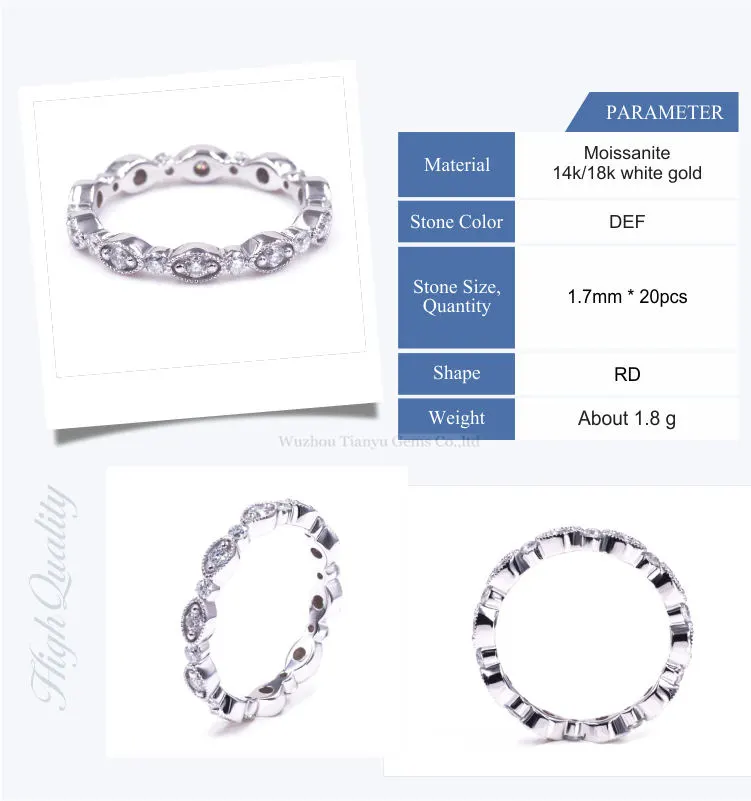 14k gold wedding bands unique designs DEF/VVS round moissanite diamond
