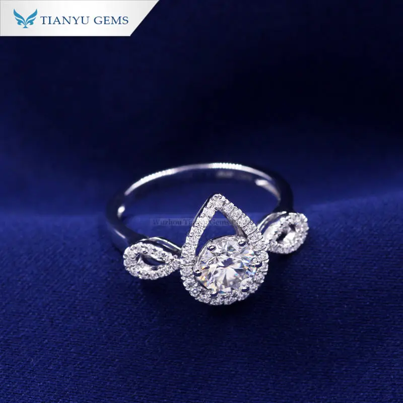 Tianyu Gems Waterdrop Pear Cut Moissanite Diamond Wedding Women Ring in 10K White Gold