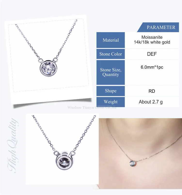 Tianyu gems 0.75ct moissanite white gold pendant