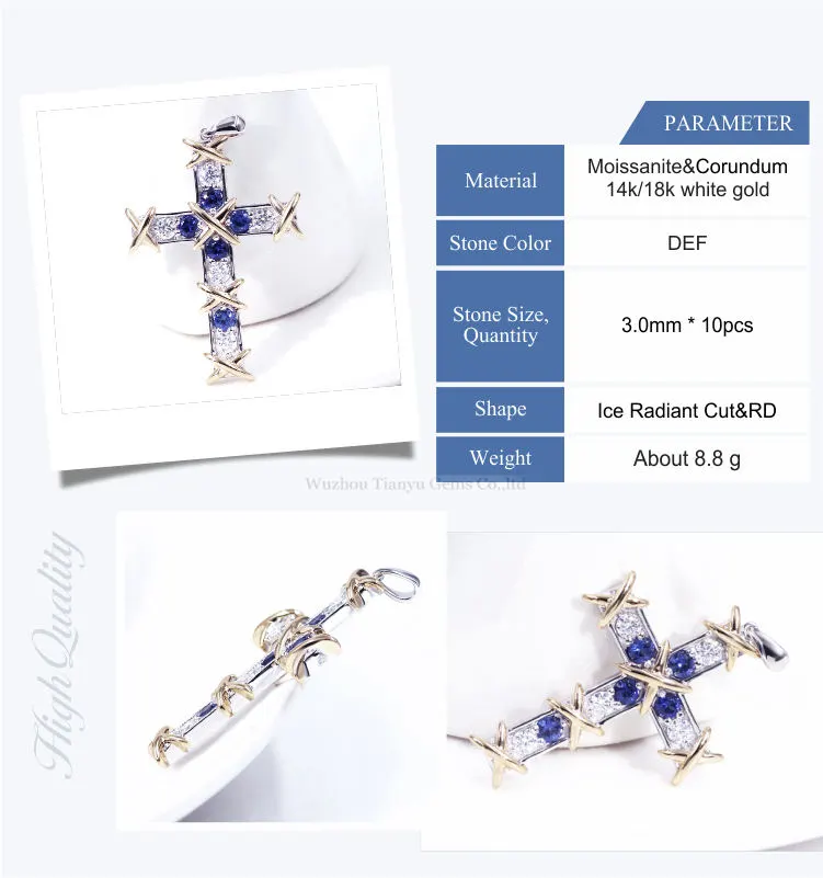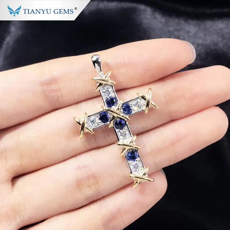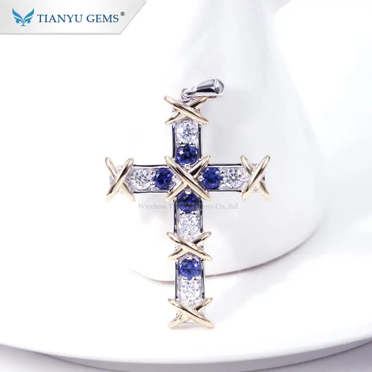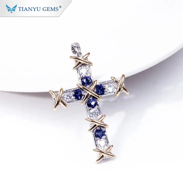 Tianyu gems color gemstone white gold cross necklace pendant