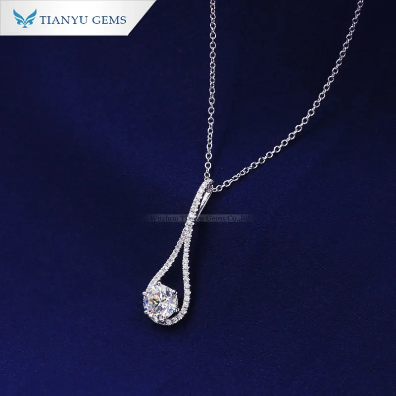 Tianyu gems luxury style center round moissanite diamond women pendant necklace