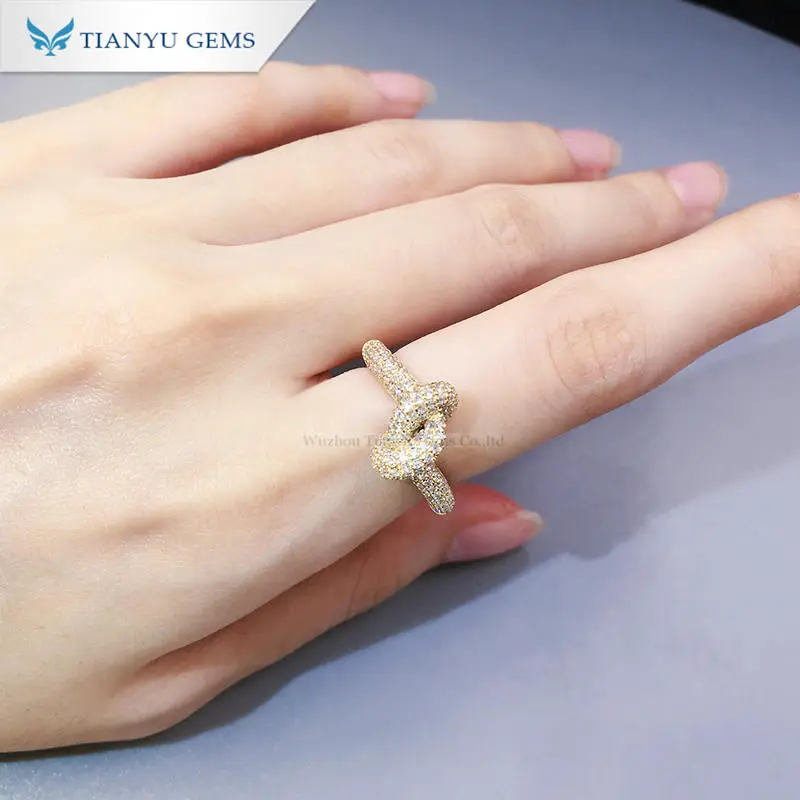 Center Stone: Center stone features  Lab Diamond in nail setting Knot ring