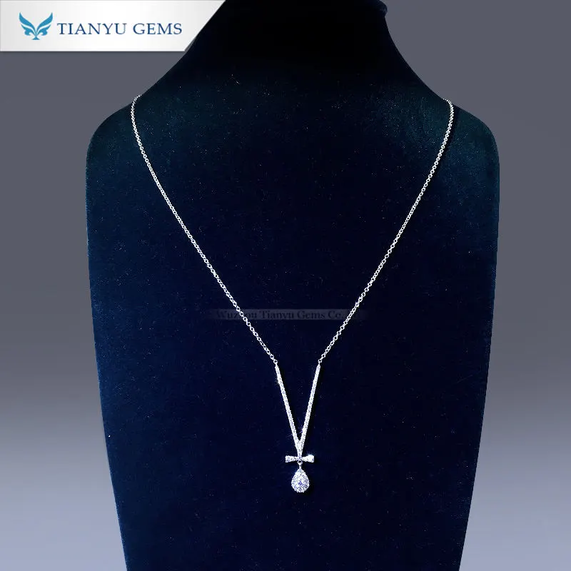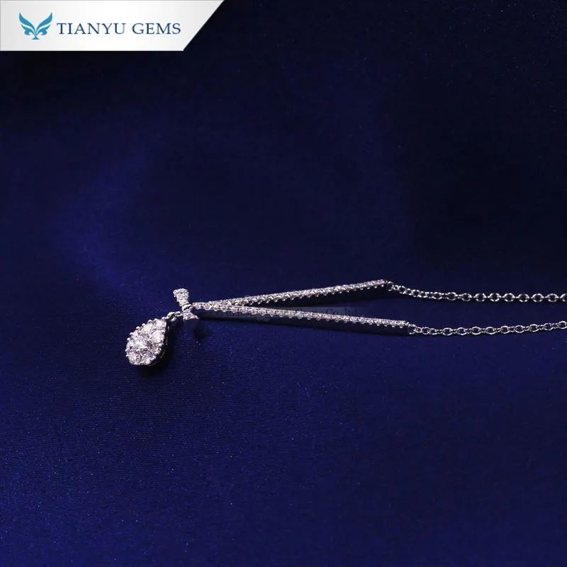 Tianyu gems waterdrop shape pendant colorless melee moissanite diamond women necklace