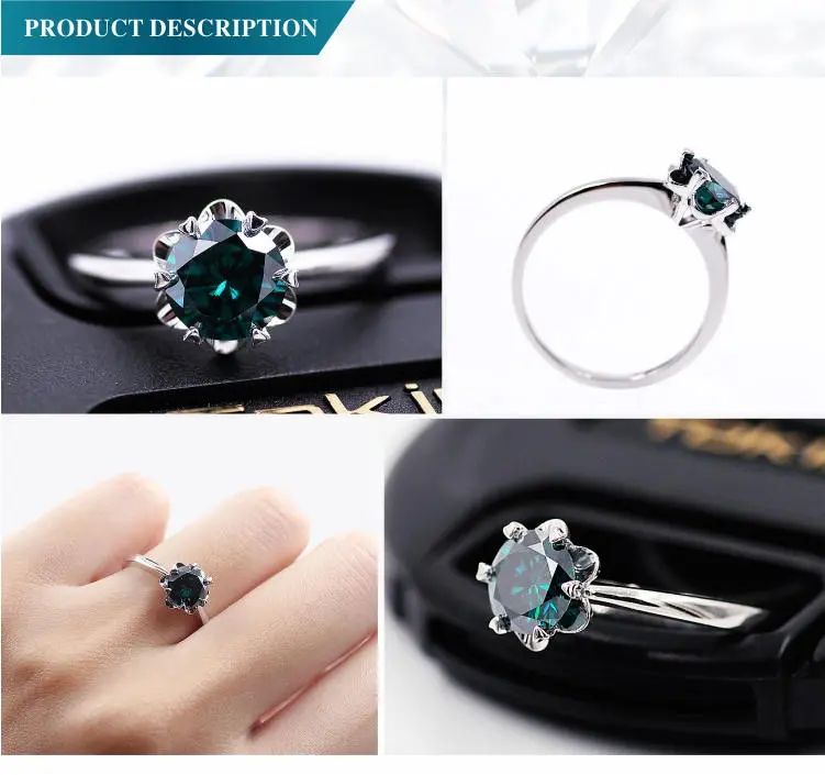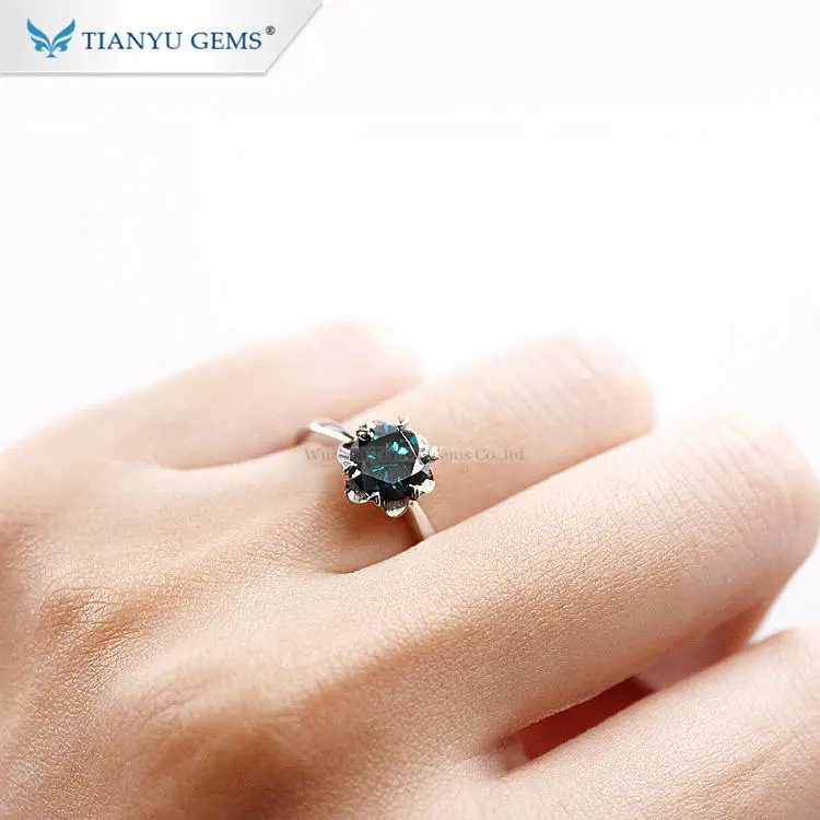 Tianyu Gems customized 14K gold 6 prongs set 1ct 6.5mm Round brilliant cut dark green moissanite diamond engagement solitaire ring jewelry for women