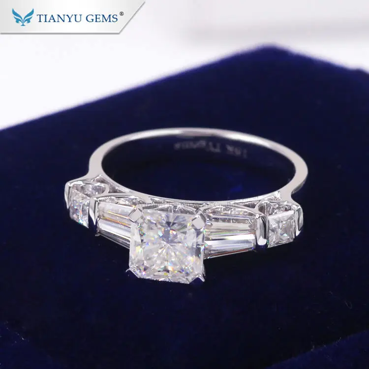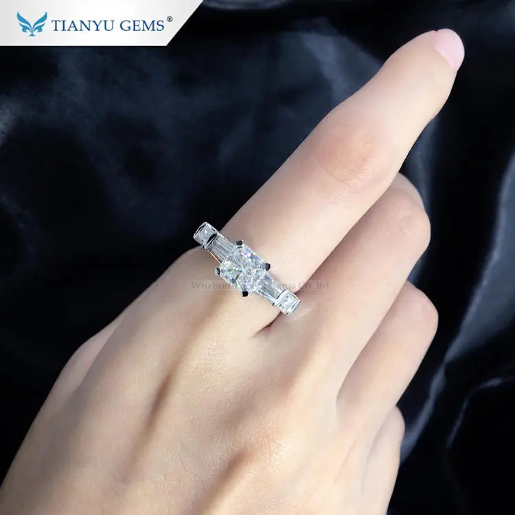 Tianyu gems classic princess and trapezoid colorless moissanite diamond women 14K white golg jewelry wedding engagement rings