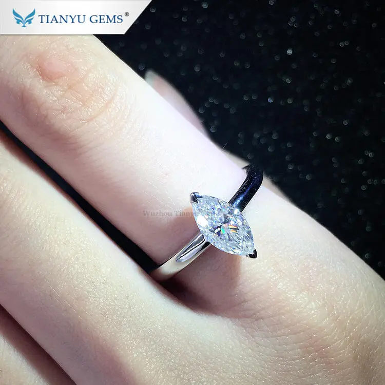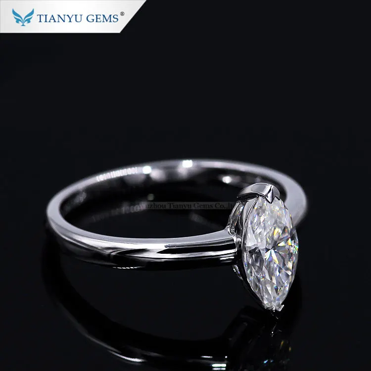 Tianyu Gems custom18k pure white gold one solitaire colorless marquise cut 1ct moissanite diamond gemstone rings for women