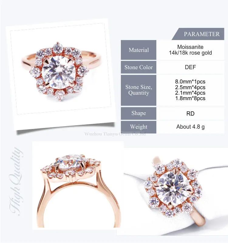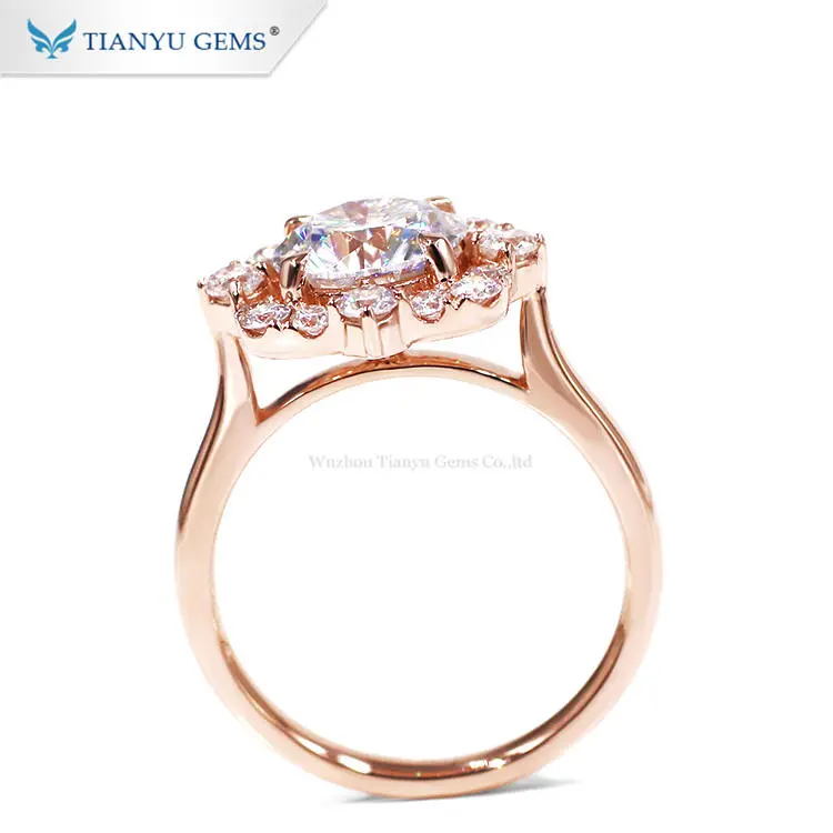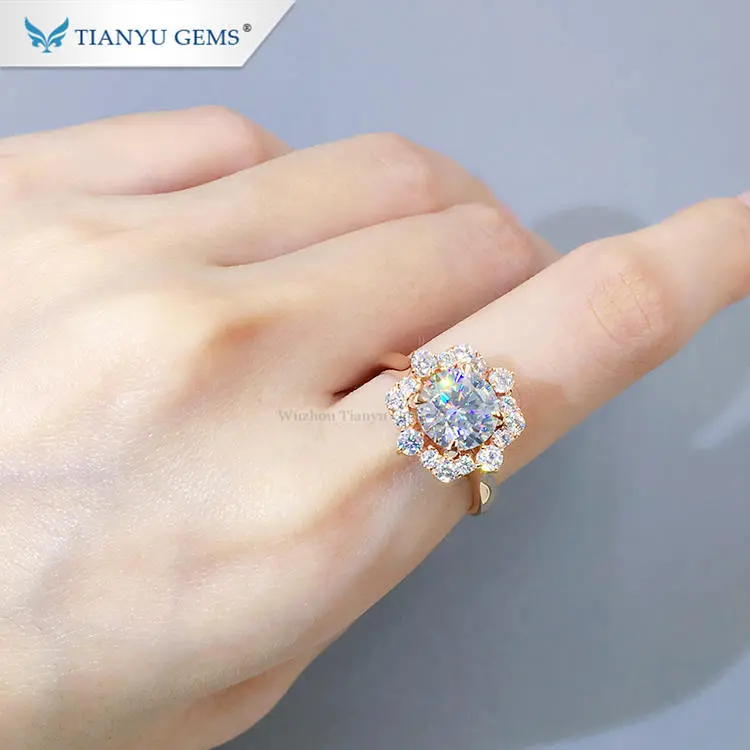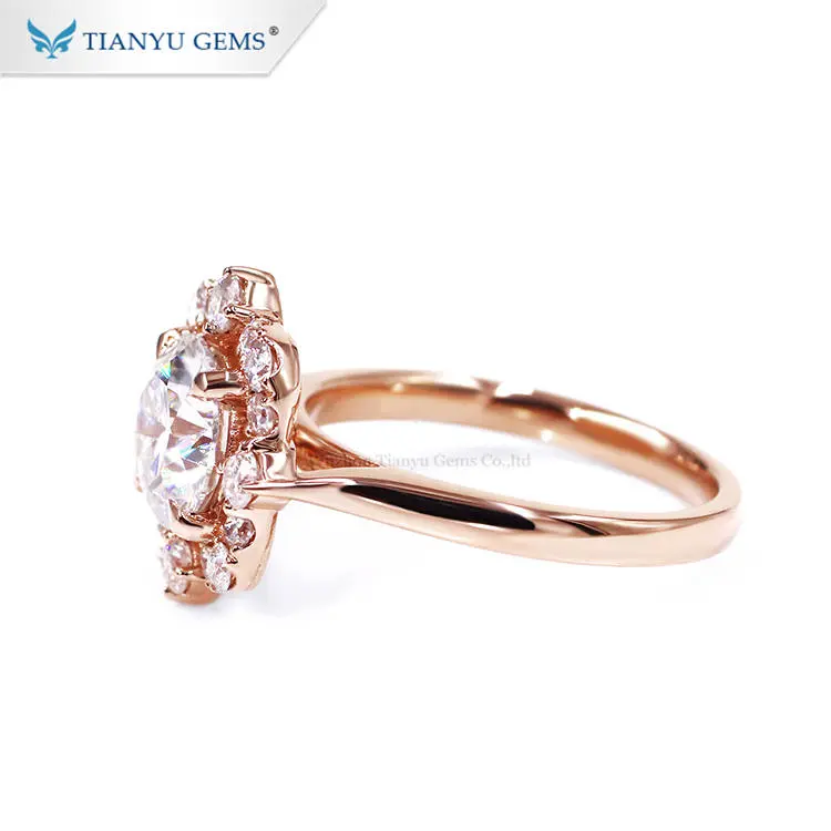 Tianyu Gems personalized custom sunflower shape diamond halo round brilliant cut Moissanite diamond wedding engagement ring jewellery in 18k solid rose gold