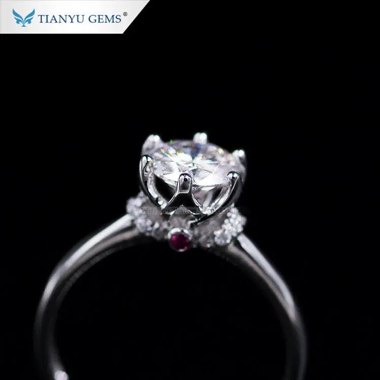 Tianyu Gems real fine women gold jewellery 7mm colorless round cut moissanite diamond gemstone ring with hidden halo&smart stone