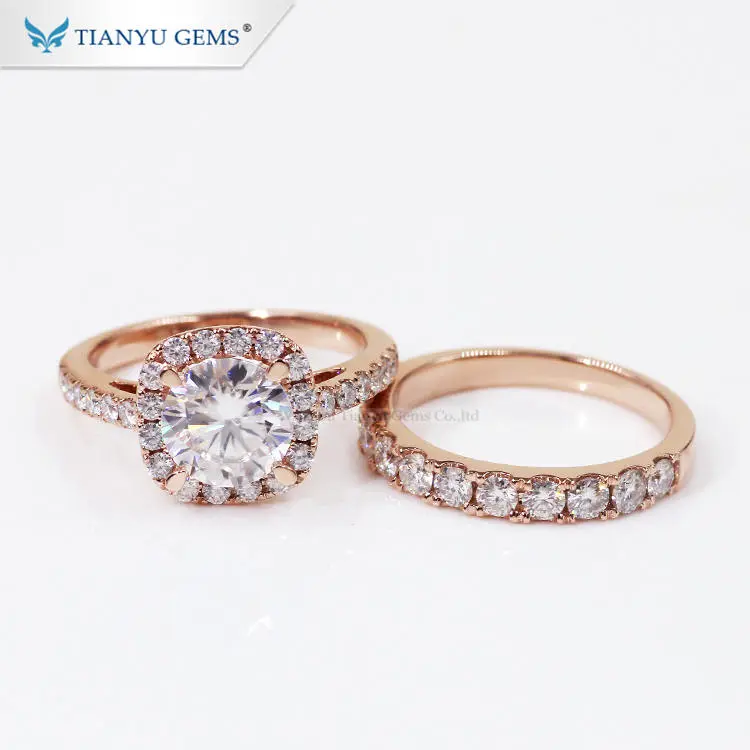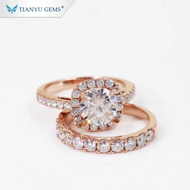 Tianyu Gems customized 14k rose gold 1.0ct round heart&arrow colorless moissanite ring set for ladies